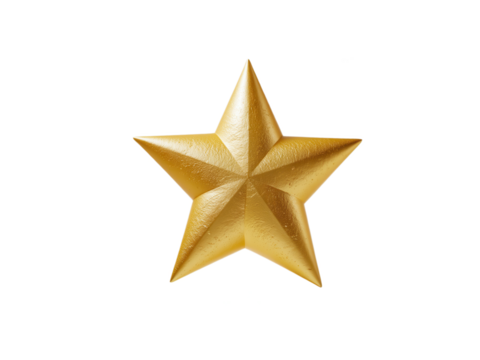 Golden Christmas Star metal bright shine five angle star shape photo isolated on transparent background.