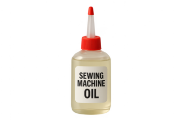 Sewing machine oil bottle with red cap on transparent background