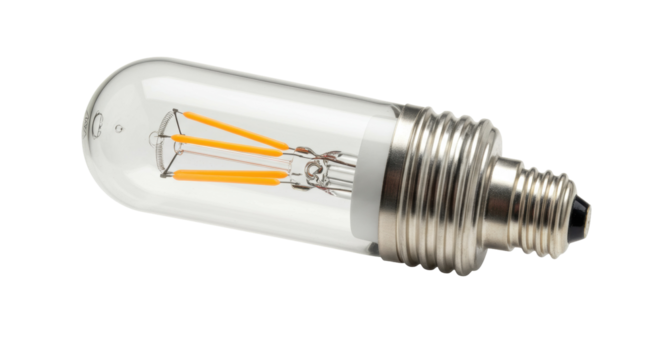 Clear tubular LED light bulb isolated, energy-efficient lighting for home decor and vintage-style fixtures
