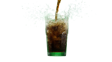 Refreshing soda splash in a glass, capturing the fizz and excitement of a cold beverage.