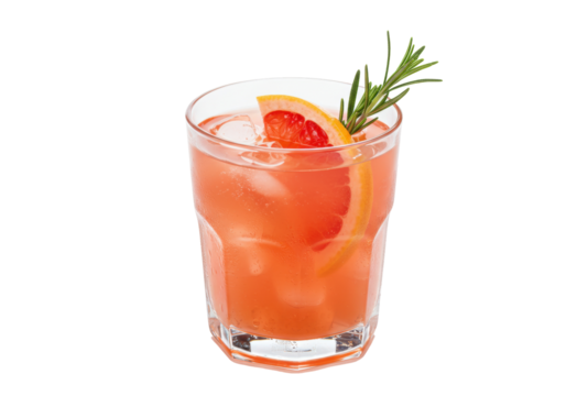 Paloma cocktail in glass isolated PNG on transparent background, refreshing grapefruit drink with rosemary garnish for summer