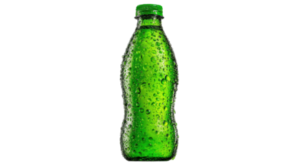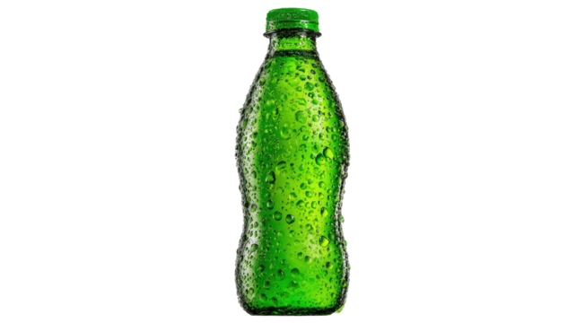 Close-up of a fizzy drink bottle with condensation and bubbles