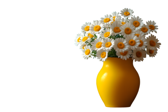 Vibrant Yellow Vase with Fresh White Daisies on a Black Background Ideal for Home Decor and Fl