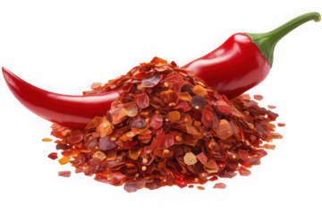 flaying red hot chili pepper fl akes isolated on white background