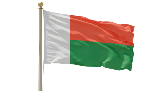 Madagascar flag waving on a flagpole with white, red, and green colors, symbol of Madagascar, perfect for educational and cultural projects