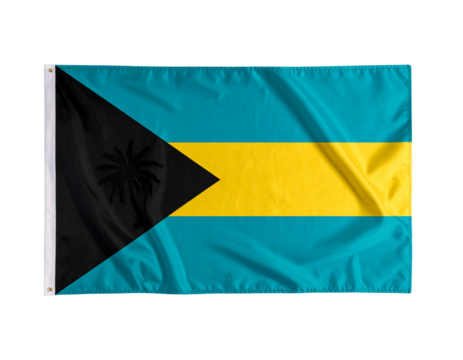 Flat Display of Bahamas Flag on Vertical Pole with Vibrant Colors – Transparent Background
