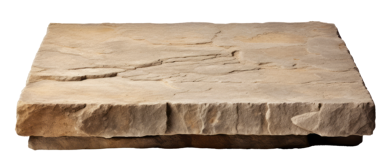 Podium made of flat flagstone stone for paving garden paths isolated on a transparent background. Full depth of field. PNG.