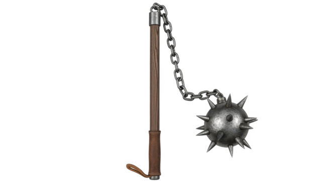 Medieval spiked mace weapon rendered for fantasy games or historical reenactment isolated on transparent background
