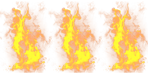 Bright yellow flame on transparent background for danger concepts