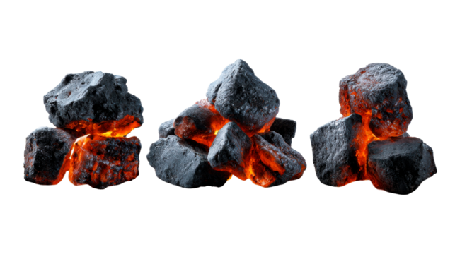 Three glowing clay oil lamps with stylized flames on transparent background
