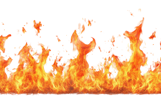 Fire Flames Arranged on Ground Isolated on Transparent Background – Realistic Fire Effect