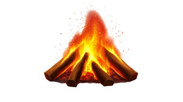 Realistic Fire Flames on Ground Isolated on Transparent Background – Natural Flame Texture