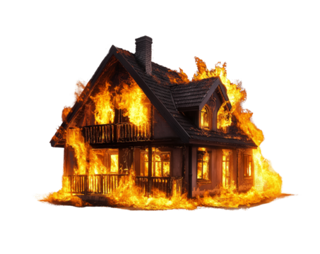 Burning Home with Flames Spreading from Windows isolated on White or transparent background PNG