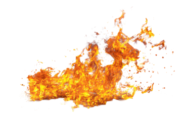 A vivid depiction of a roaring fire with bright yellow and orange flames against a black background scene