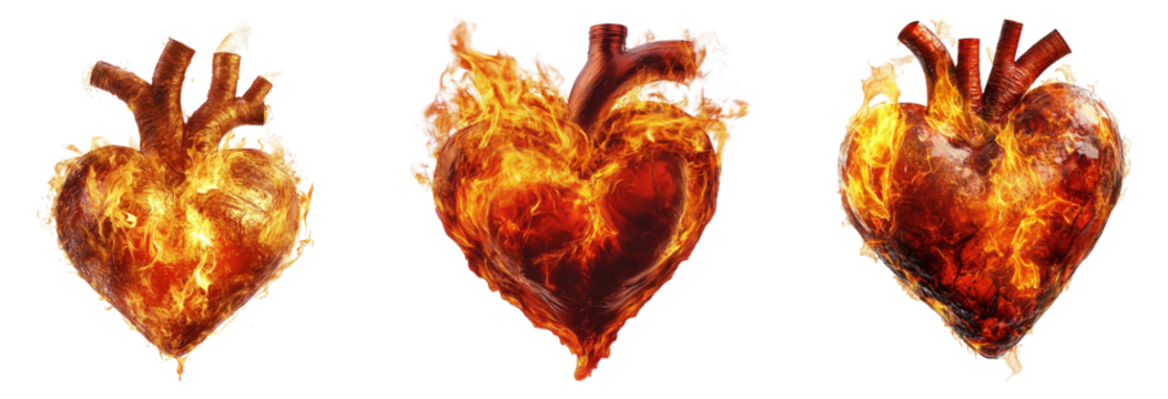 Fiery Heart of Flames on Transparent Background – Symbol of Passion and Burning Love