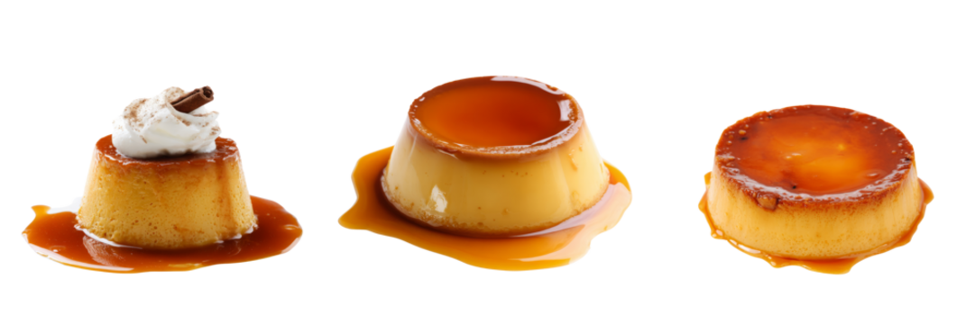 Delicious flan dessert trio on transparent background culinary art studio shot sweet treats