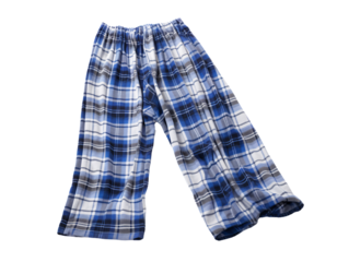 Comfortable blue plaid pajama pants folded, isolated on transparent background