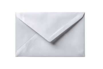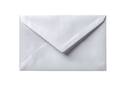 Pristine brilliant white envelope with partially open square flap, smooth matte finish, sharp edges, centered on transparent background with copy space, concept of meticulous professional