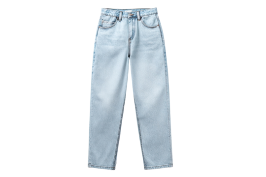 Studio shot of blue flare jeans isolated on transparent background, perfect for fashion or retail projects