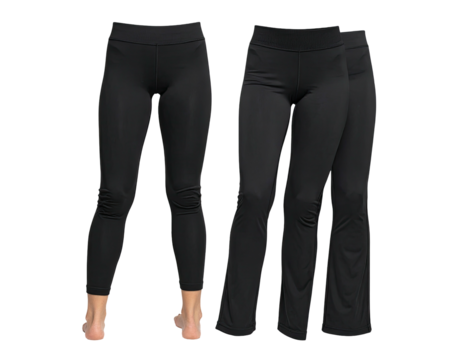 Realistic loose fit yoga pants with wide waistband and flared leg openings, isolated