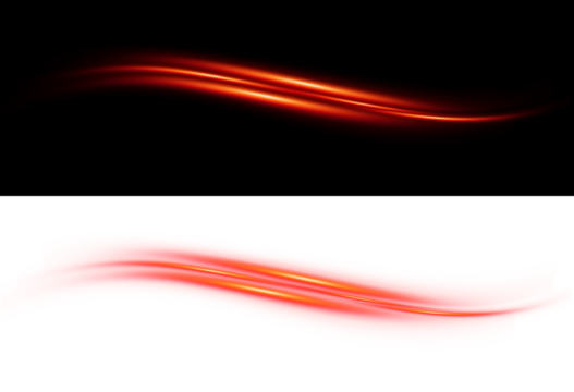 Red light streaks background effect abstract curved lines with glow and blur on black and transparent background for design