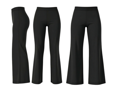 Elegant white bell-bottom pants showcasing front and back views on transparent presentation
