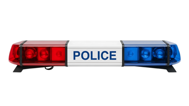 Bright red flashing emergency beacon light with a clear plastic dome and illuminated led bulb isolated on transparent background