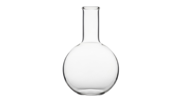 Round bottom flask isolated PNG on transparent background, laboratory glassware for chemistry and scientific experiments