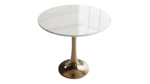 Isolated round marble table with central metal leg standing in the studio for dining