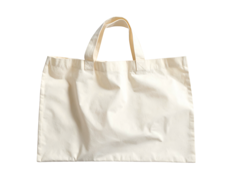 Plain, rectangular canvas tote bag, isolated on black background, with two handle straps