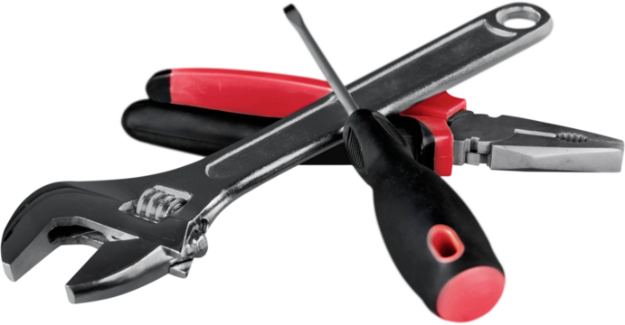 Adjustable Wrench, Flat Head Screwdriver And Pliers - Isolated