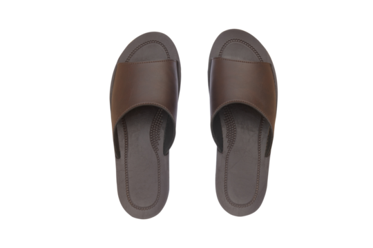 A pair of stylish men's sandals, their sleek straps and comfortable footbeds standing out against a white transparent background