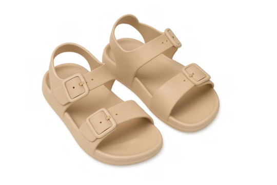 Comfortable beige rubber sandals for summer beachwear and casual fashion, showcasing trendy warm weather footwear with transparent background