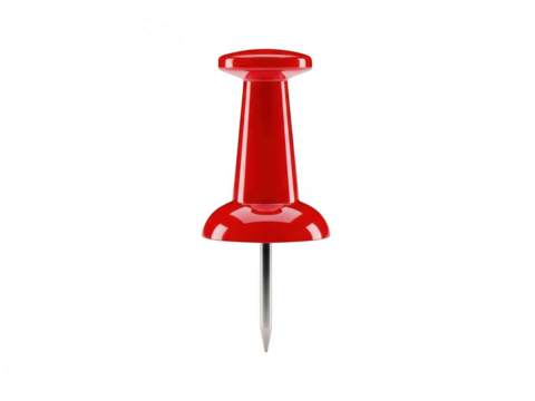 Pink glossy push pin with metal needle for office stationery and design use isolated on transparent background