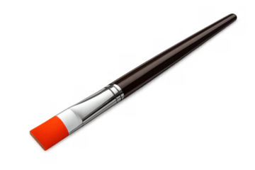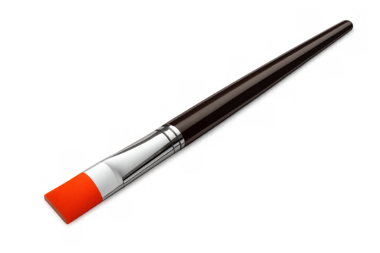Artist flat paintbrush with an orange tip and dark handle on a transparent background, representing art and painting supplies