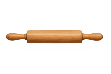 Wooden rolling pin isolated on transparent background for flattening dough and pastry in baking and cooking preparation, a classic kitchen utensil