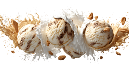 Top view of different flavor ice cream in gelatery on silver steel containers. Isolated over white transparent background