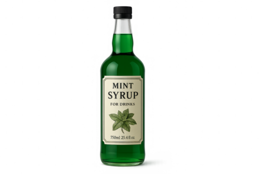 Green mint syrup bottle isolated on transparent background