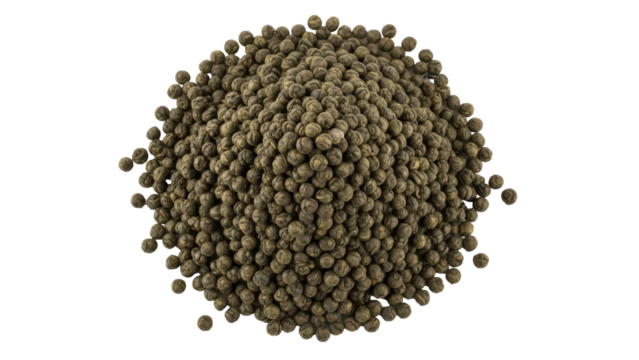 Isolated mound of small dried green peppercorns for healthy cooking and spicy seasoning