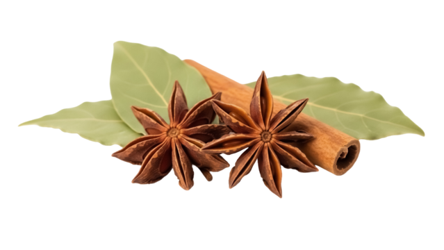 Aromatic star anise and cinnamon stick isolated PNG, culinary spices for flavoring food and drinks on transparent background