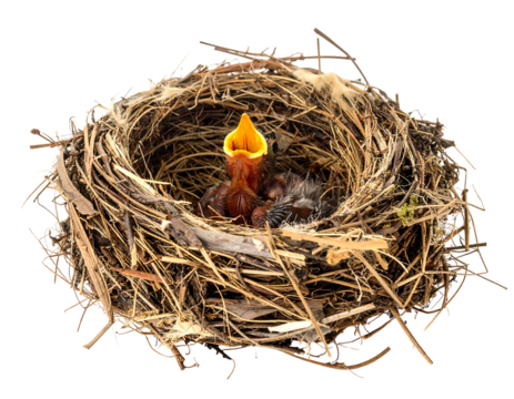 Caring Bird Parent Feeding Hungry Chicks in a Woven Nest on Branch Isolated on Transparent Backgr...