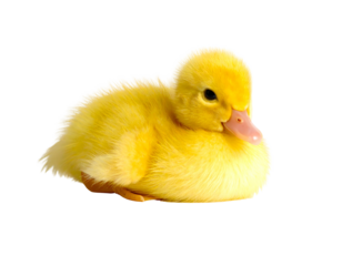 Tiny fluffy yellow duckling, a cute baby bird with soft downy feathers
