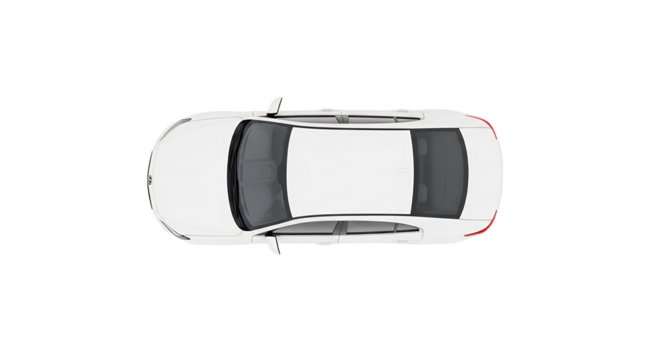 White Sedan Car Top View Isolated on White Background Stock Photo for Business and Advertising