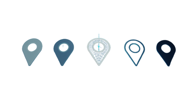 Digital transport icons including a worker, vehicles, and directional signs for logistics and shipping applications.