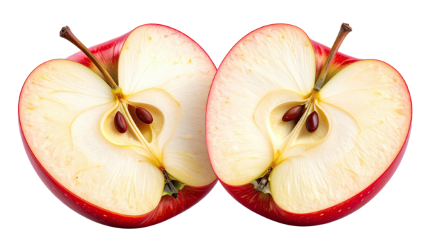 Sliced red apple reveals seeds, core, and vibrant, juicy flesh