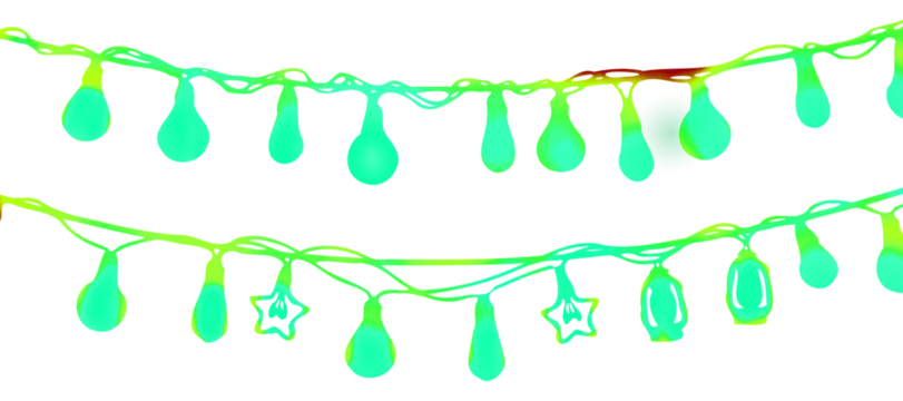 Two strands of decorative lights hang against a plain background. The lights are rounded