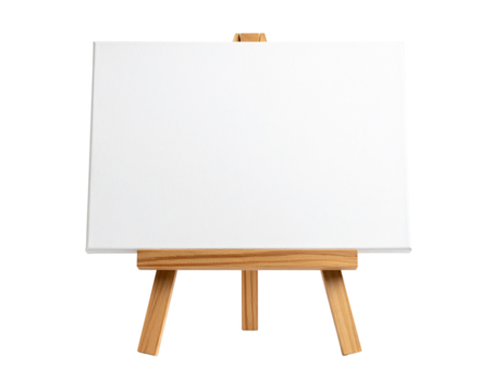 Blank White Canvas on Wooden Easel, Front View, Studio Lighting, Isolated