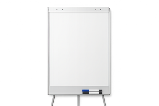 Blank white flip chart on a tripod easel stand. Office presentation board. Isolated on transparent background, png