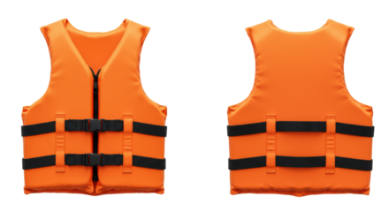 Isolated Bright Orange Life Vest, Essential Equipment for Water Safety and Recreational Activities