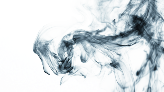 Abstract steel blue smoke wavy lines curling isolated on transparent background